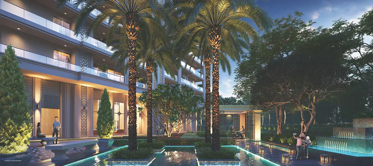 The Club Monarque elevates lifestyle with three exclusive realms — Wellness Club with pools and jacuzzi, Activity Club with gym, golf simulator, and spa, and Celebration Club with patisserie, restaurant, and bar. Residents enjoy exclusive access to a 12-hole golf course and seamless electric golf cart transport within the community. With dedicated entryways, lush landscapes, and forest-view facades, The Monarque offers a perfect blend of elegance, wellness, and grandeur — where every day unfolds in sophistication and serenity.